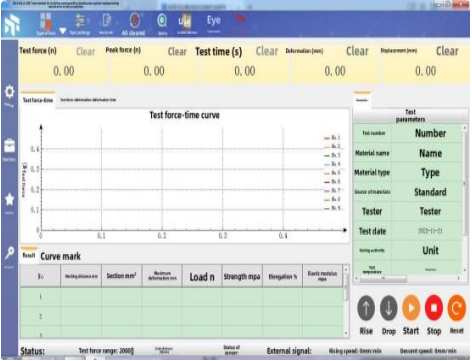 1. 試験力、ピーク値、変位、変形、その他の信号をリアルタイムで測定および表示します。 Win2000 や WinXP などのプラットフォーム上でリアルタイムのデータ取得と制御を可能にします。高速サンプリング、プロセス制御、ビーム移動速度調整、パラメータ入力などの操作をキーボードとマウスで完結できるため、便利で効率的な操作が可能です。